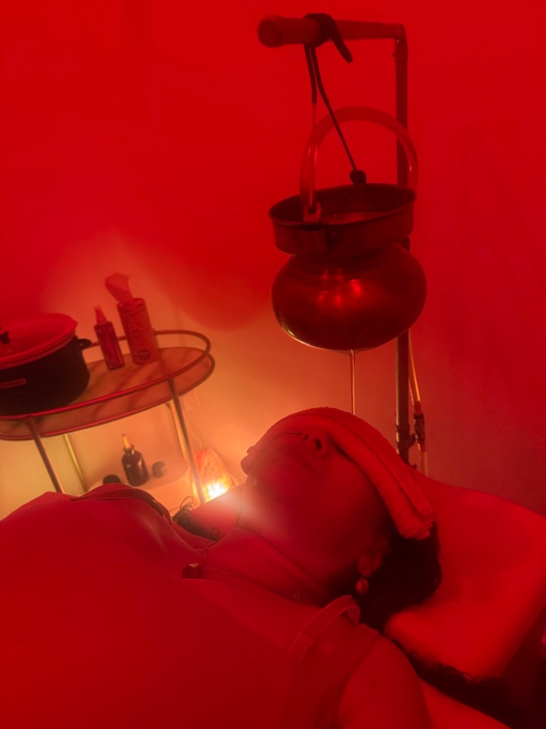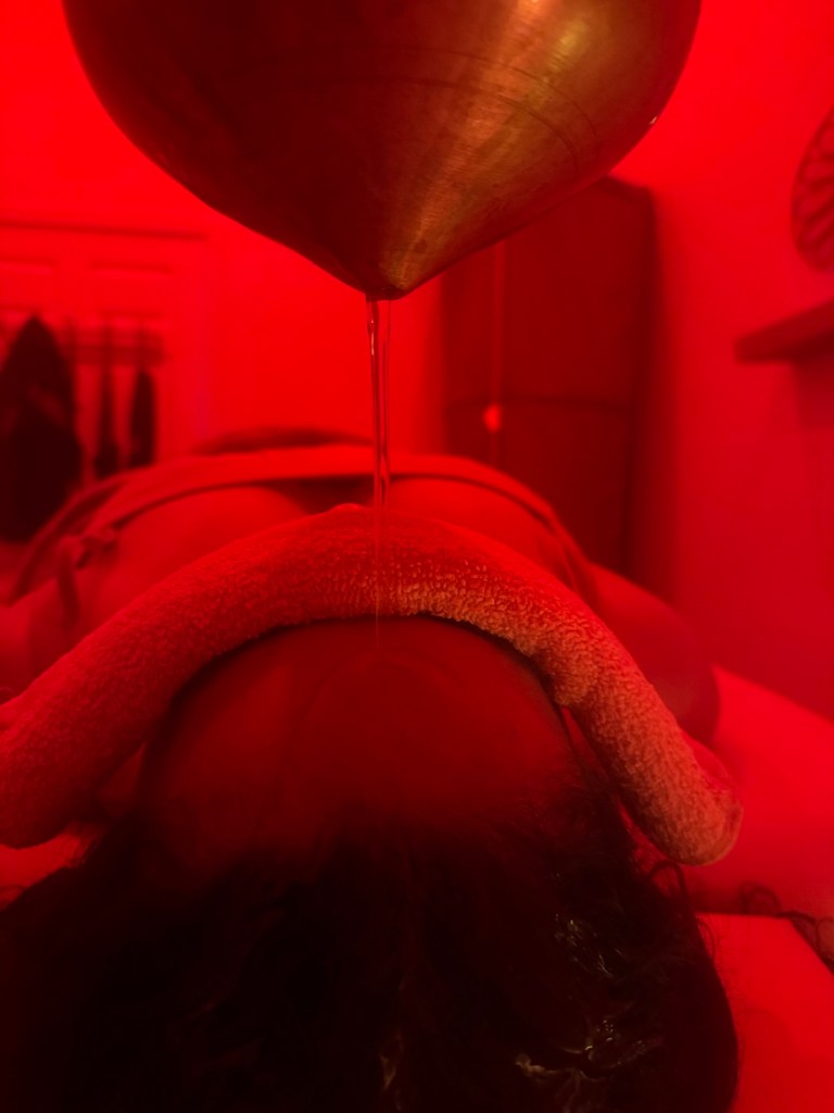 Shiro in Sanskrit means “head” & Dhara means to “flow” this helps balance Vata & Pitta Dosha. This helps put you in a relaxed state of mind, by pouring therapeutic oils over the third eye. ๐๏ธ This helps with calming & stillness of the mind and can help with stress, insomnia, hair fallout, headaches,. It helps aggravated Pitta Dosha helping AMA of the mind causing anger, anxiety & migraines.